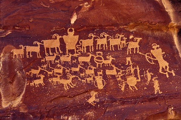 Indian petroglyphs at Hunter Panel in Nine Mile Canyon, Utah...........